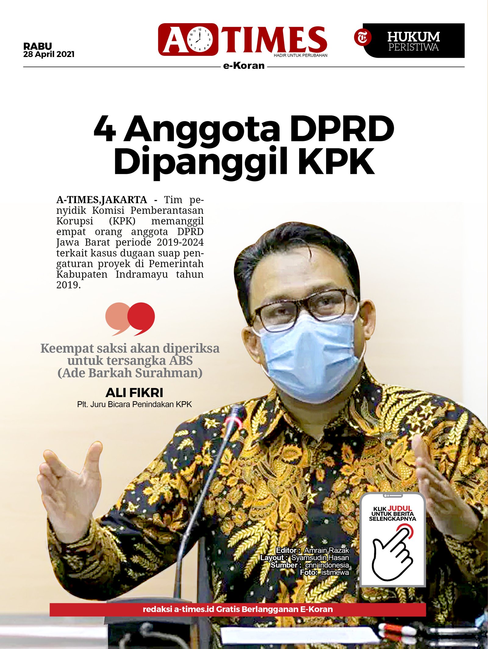 A-TIMES.ID, JAKARTA — Tim penyidik Komisi Pemberantasan Korupsi (KPK) memanggil empat orang anggota DPRD Jawa Barat periode 2019-2024 terkait kasus dugaan suap pengaturan proyek di Pemerintah Kabupaten Indramayu tahun 2019.