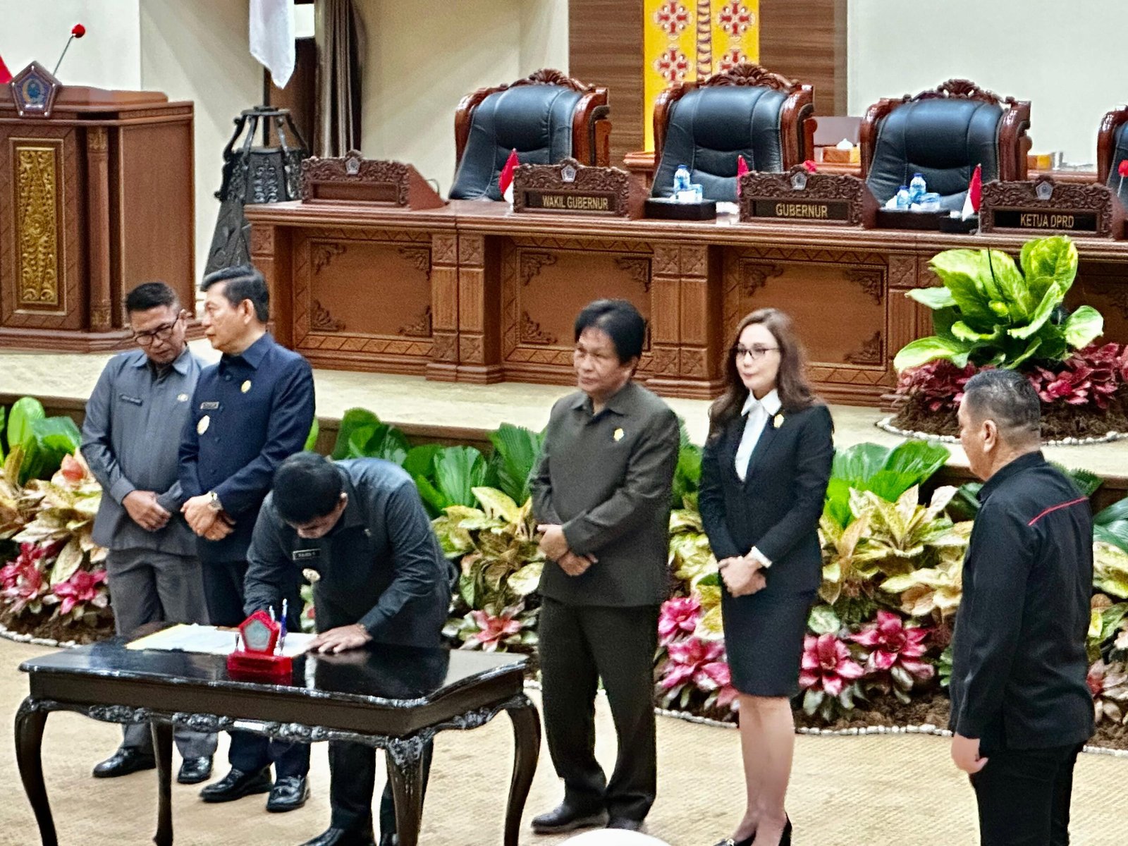 Gubernur Sulut Yulius didampingi wakil gubernur Sulut Dr Victor Mailangkay hadir di agenda Rapat Paripurna dalam rangka pengambilan keputusan terhadap Rancangan Peraturan Daerah (Ranperda) tentang Pertanggungjawaban ABPD Prov Sulut Tahun Anggaran 2024.