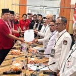 A-TIMES, MANADO–Bakal Calon DPD RI Hi Abid Takalamingan (AT) Jumat (12/5/2023) di Komisi Pemilihan Umum (KPU) Sulut. Ratusan pendukungnya mengenakan kemeja putih dan dan kaus bertuliskan the