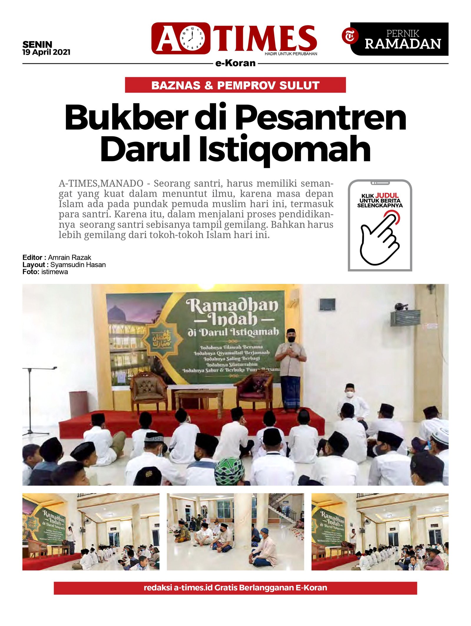 “Selamat menjalankan ibadah puasa Ramadhan dan tetap menjaga protap Covid-19, semoga Allah segera angkat musibah ini,” tutupnya.