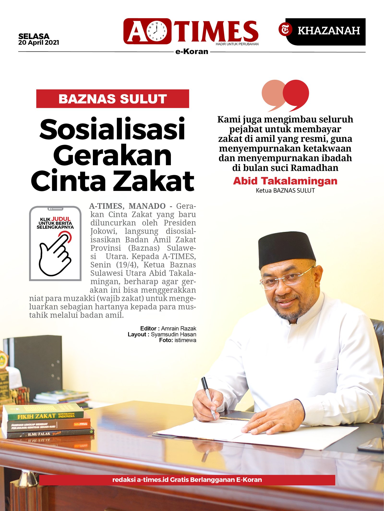 A-TIMES.ID, MANADO — Gerakan Cinta Zakat yang baru diluncurkan oleh Presiden Jokowi, langsung disosialisasikan Badan Amil Zakat Provinsi (Baznas) Sulawesi Utara.