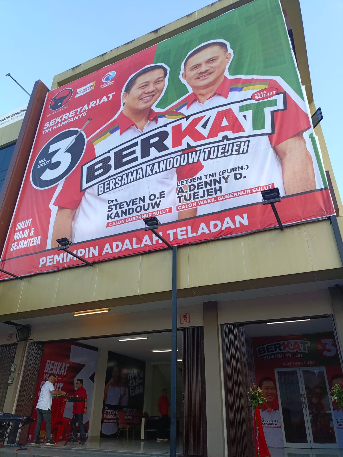 A–TIMES,MANADO–Warga memadati Kantor Sekretariat Tim Pemenangan pasangan calon gubernur Steven Kandouw dan cawagub Albert Denny Tuejeh(SK-DT) atau Berkat(Bersama Kandouw-Tuejeh) Sabtu(29/9/2/2024) . Pasalnya siang tadi dilakukan peresmjan Sekretariat pemenangan SK-DT. Peresmian itu di lakukan bendahra DPP Olly Dondokabey yang juga Ketua DPD PDIP Sulawesi Utara. Kanto4 tersebut berlokasi Ring Road I, Kelurahan Paal 4, Kecamatan Tikala, Kota Manado.