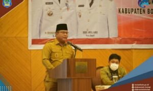 A-TIMES.ID BOLSEL – Bunda PAUD Kabupaten sekaligus Ketua TP-PKK Kabupaten Bolsel Selpian Kamaru-Manoppo bersama Kepala Dinas Pendidikan Rante Hatani SPd, MSi membuka kegiatan Bimtek Penguatan Kapasitas Bunda PAUD Tingkat Kecamatan dan Desa dengan tema “Menuju PAUD Berkualitas Holistik Integratif” Tahun 2021 di Ruang Pertemuan Dinas Pendidikan, Kawasan Perkantoran Panango, Kamis (11/11/2021).