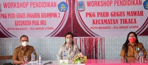 A-TIMES.ID, MANADO – Pemerintah Kota (Pemkot) Manado terus memberikan perhatian dalam dunia pendidikan. Bunda PAUD yang juga Ketua Tim Penggerak (TP) PKK Kota Manado, Irene Golda Angouw Pinontoan, Selasa (21/9) kemarin menghadiri workshop pendidikan PKG PAUD Gugus Mawar di Kecamatan Tikala dan PKG Gugus Anggrek Kelompok 2 di Kecamatan Paal Dua.
