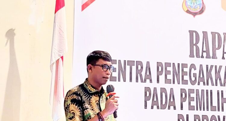 PROAKTIF: Anggota Bawaslu Sulut Zulkifli Densi saat narsum (*) A-TIMES,MINUT–, Badan Pengawas Pemilihan Umum Provinsi Sulawesi Utara (Sulut) – Bawaslu Provinsi Sulut gelar Rapat Koordinasi Sentra