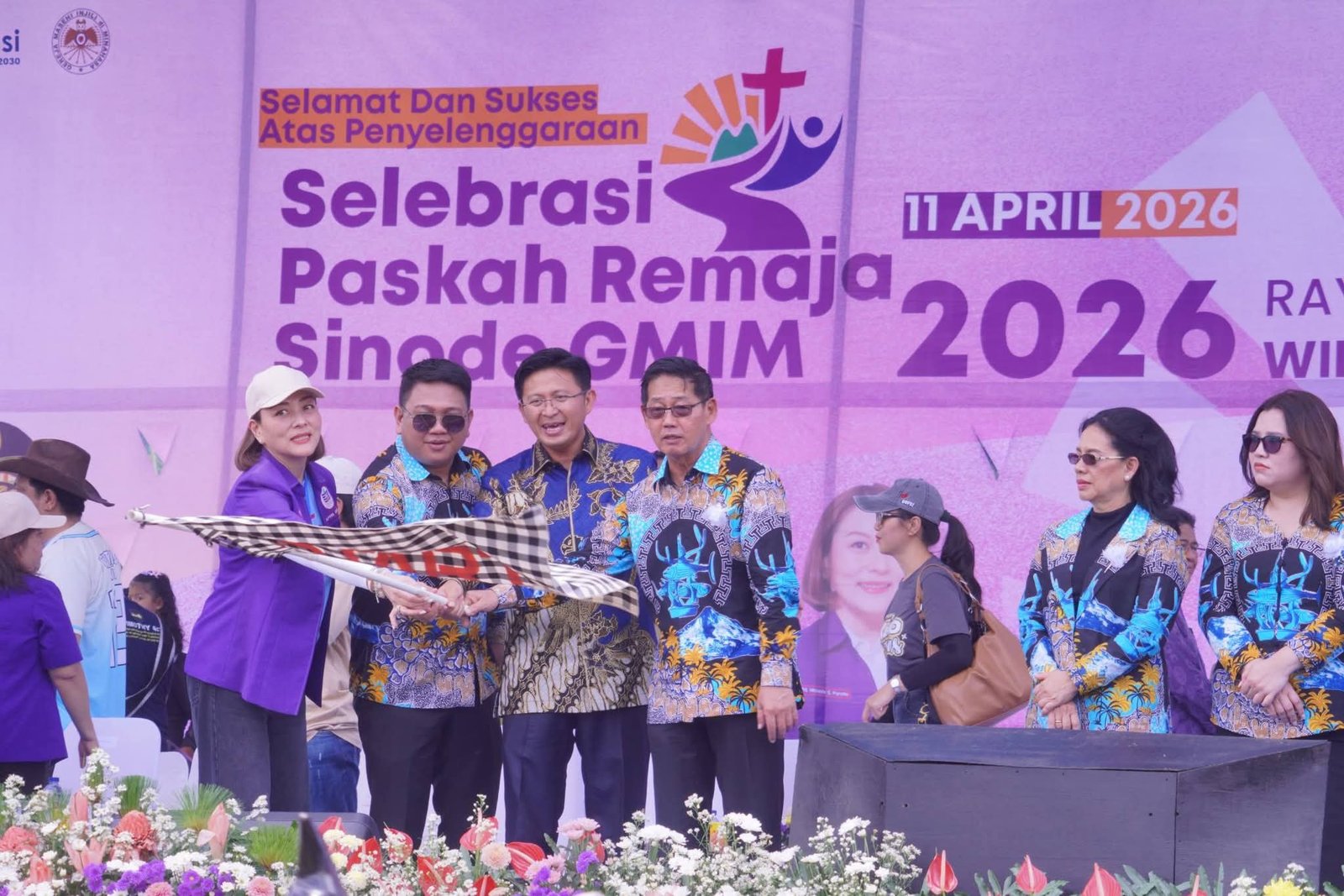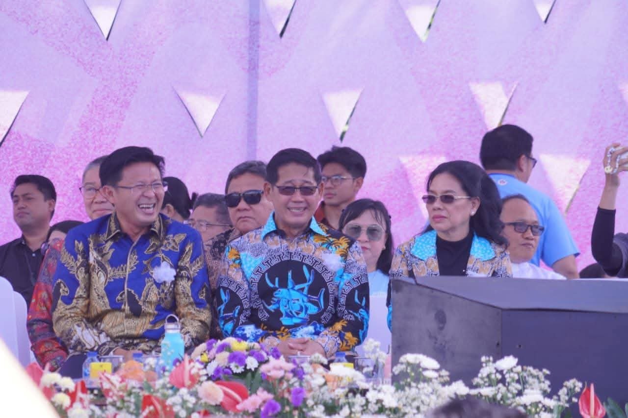A—TIMES,BITUNG–Momemtum Paskah bukanlah sekedar perayaan, tetapi juga pengingat bagi generasi muda untuk tetap berjalan di jalan kebenaran. Hal ini dikatakan gubernur Sulut Yulius Selvanus Sabtu(11/4/2026) pada sambutannya yang di bacakan Kepala Dinas Pemuda dan Olahraga Sulut Dr. Audy Pangemanan. Menurutnya, kehadiran ribuan remaja GMIM menjadi bukti bahwa gereja memiliki peran penting dalam membentuk karakter generasi muda. Selebrasi Perayaan tersebut dihadiri ribuan remaja dari berbagai jemaat yang memadati Lapangan Sari Cakalang, Kelurahan Madidir Ure, Kecamatan Madidir. . Momentum iman yang sarat sukacita ini turut dihadiri Wali Kota Bitung Hengky Honandar wakil Wali kota Randito Maringka bersama ketua TP PKK Ellen Sondakh dan sekretaris PKK Jasynta Maribel Gumolung sekot Rudy Theno Forkopimda dan lainnya.