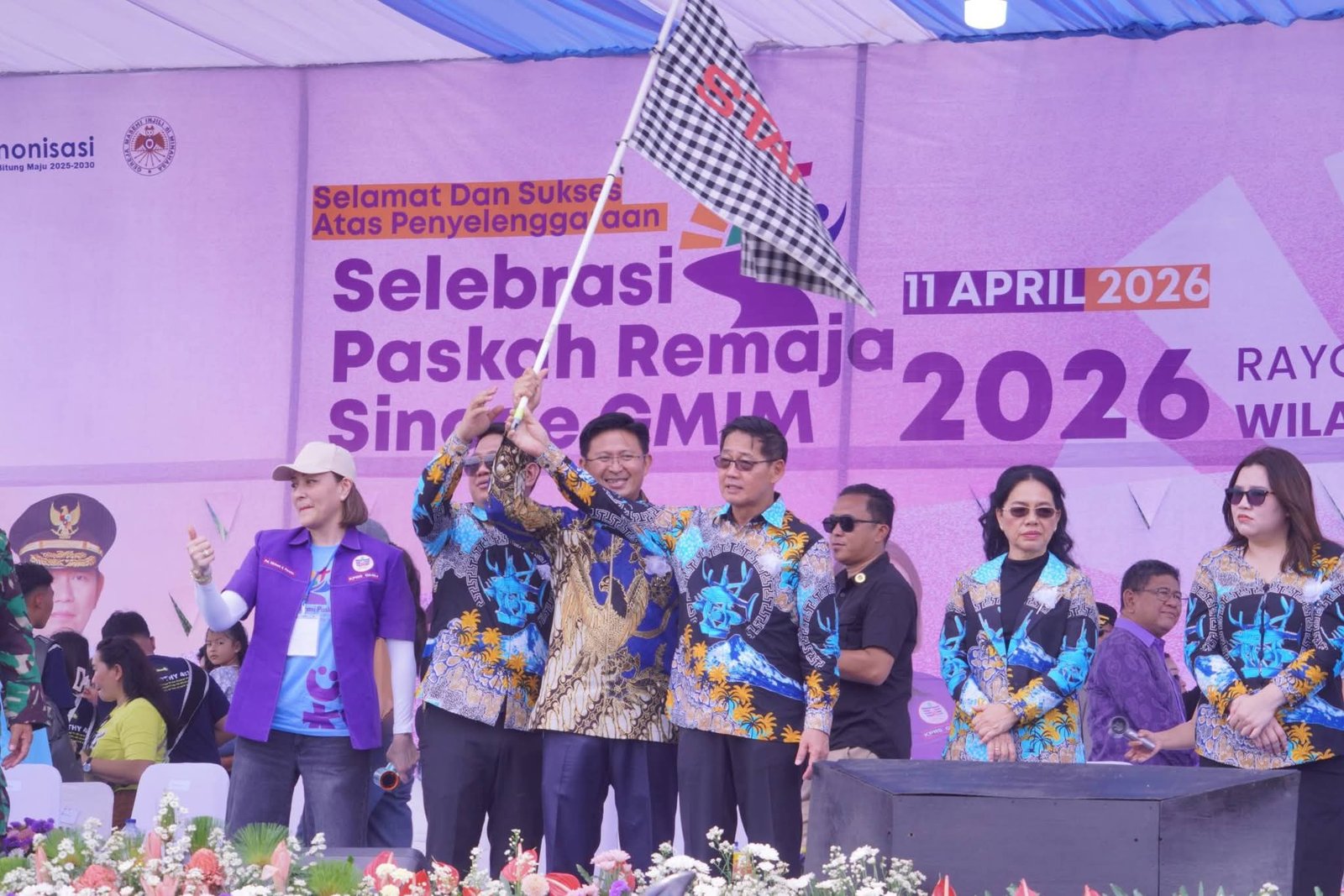 A—TIMES,BITUNG–Momemtum Paskah bukanlah sekedar perayaan, tetapi juga pengingat bagi generasi muda untuk tetap berjalan di jalan kebenaran. Hal ini dikatakan gubernur Sulut Yulius Selvanus Sabtu(11/4/2026) pada sambutannya yang di bacakan Kepala Dinas Pemuda dan Olahraga Sulut Dr. Audy Pangemanan. Menurutnya, kehadiran ribuan remaja GMIM menjadi bukti bahwa gereja memiliki peran penting dalam membentuk karakter generasi muda. Selebrasi Perayaan tersebut dihadiri ribuan remaja dari berbagai jemaat yang memadati Lapangan Sari Cakalang, Kelurahan Madidir Ure, Kecamatan Madidir. . Momentum iman yang sarat sukacita ini turut dihadiri Wali Kota Bitung Hengky Honandar wakil Wali kota Randito Maringka bersama ketua TP PKK Ellen Sondakh dan sekretaris PKK Jasynta Maribel Gumolung sekot Rudy Theno Forkopimda dan lainnya.