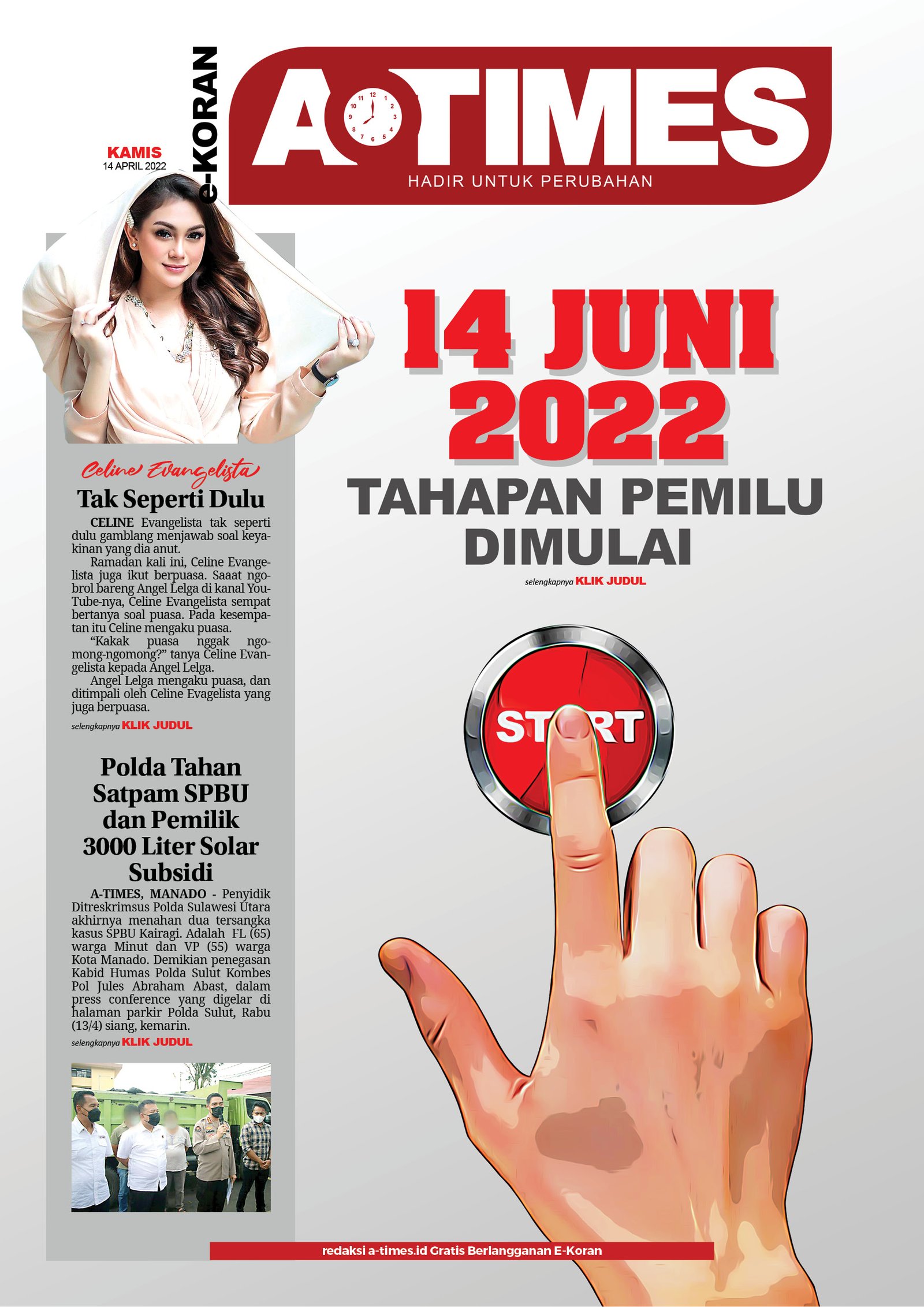 Edisi Kamis, 14 April 2022A-TIMESApril 14, 2022April 15, 2022E-Koran Berita Terkait: Edisi Rabu, 25 Agustus 2021 Unduh versi PDF-nya dengan menekan tombol DOWNLOAD di bawah ini: Berita Terkait: Edisi Kamis, 6 Mei 2021[wpdm_package id=’24014′] Berita TerkaitEdisi Kamis, 14 Juli 2022Edisi Kamis, 7 Juli 2022Edisi Kamis, 30 Juni 2022Edisi Kamis, 23 Juni 2022Edisi Kamis, 16 Juni 2022Edisi Kamis, 9 Juni 2022Edisi Kamis, 2 Juni 2022Edisi Kamis, 12 Mei 2022Jangan LewatkanEdisi Senin, 12 Februari 2024Jadi Irup HUT RI, Gubernur Selip Filosopi Makan Sayur PareEdisi Rabu, 27 Juli 2022Edisi Selasa, 26 Juli 2022