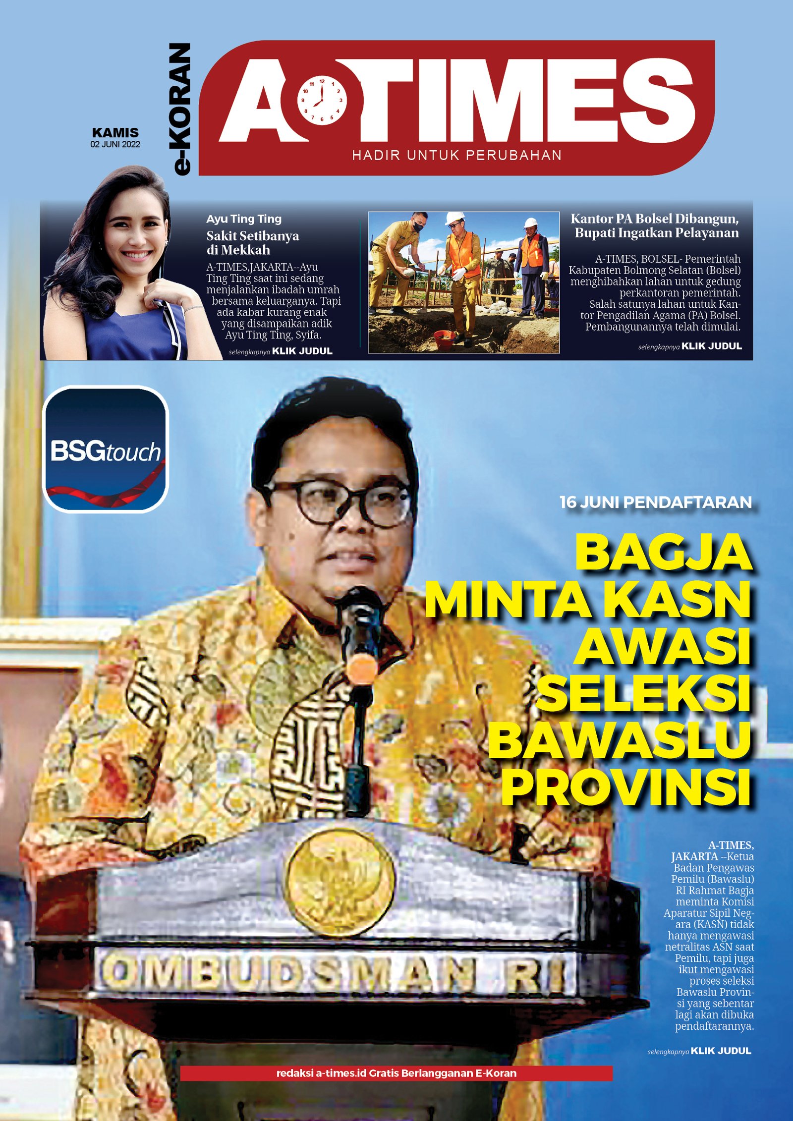 Edisi Kamis, 2 Juni 2022A-TIMESJuni 2, 2022Juni 3, 2022E-Koran Berita Terkait: Edisi Rabu, 6 April 2022 Unduh versi PDF-nya dengan menekan tombol DOWNLOAD di bawah ini: Berita Terkait: Edisi Kamis, 19 Agustus 2021[wpdm_package id=’25600′] Berita TerkaitEdisi Kamis, 14 Juli 2022Edisi Kamis, 7 Juli 2022Edisi Kamis, 30 Juni 2022Edisi Kamis, 23 Juni 2022Edisi Kamis, 16 Juni 2022Edisi Kamis, 9 Juni 2022Edisi Kamis, 12 Mei 2022Edisi Kamis, 28 April 2022Jangan LewatkanEdisi Senin, 12 Februari 2024Jadi Irup HUT RI, Gubernur Selip Filosopi Makan Sayur PareEdisi Rabu, 27 Juli 2022Edisi Selasa, 26 Juli 2022