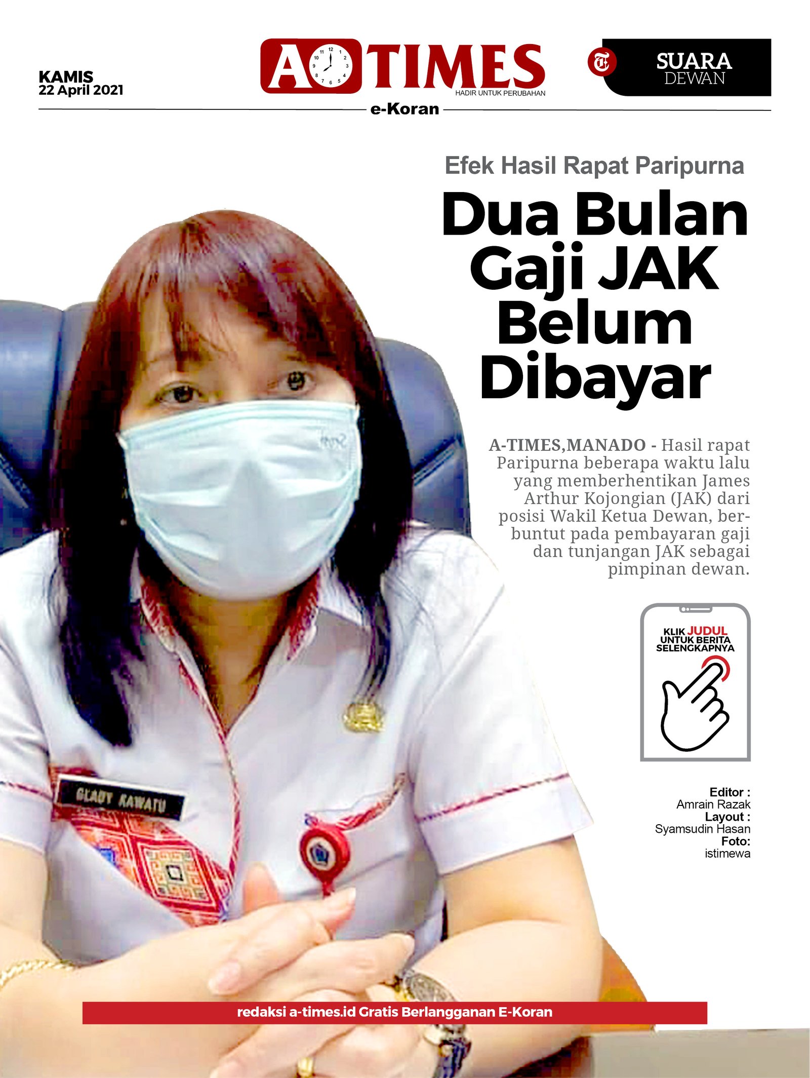 A-TIMES.ID, MANADO — Hasil rapat Paripurna beberapa waktu lalu yang memberhentikan James Arthur Kojongian (JAK) dari posisi Wakil Ketua Dewan, berbuntut pada pembayaran gaji dan tunjangan JAK sebagai pimpinan dewan.