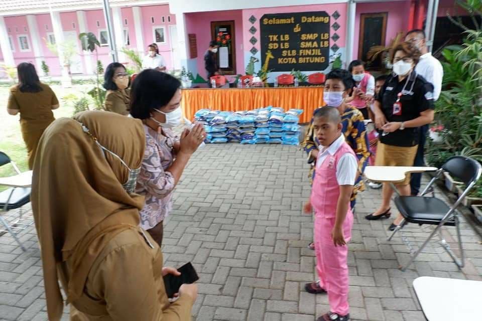 Rita Mantiri-Tangkudung, S.T. Ketua TP-PKK Kota Bitung didampingi Kadis DP3A Merianty Dumbela dan Kadis Perpustakaan Nona Mantiri membagikan bantuan kepada adik-adik di sejumlah panti asuhan dan SLB yang ada di Kota Bitung.