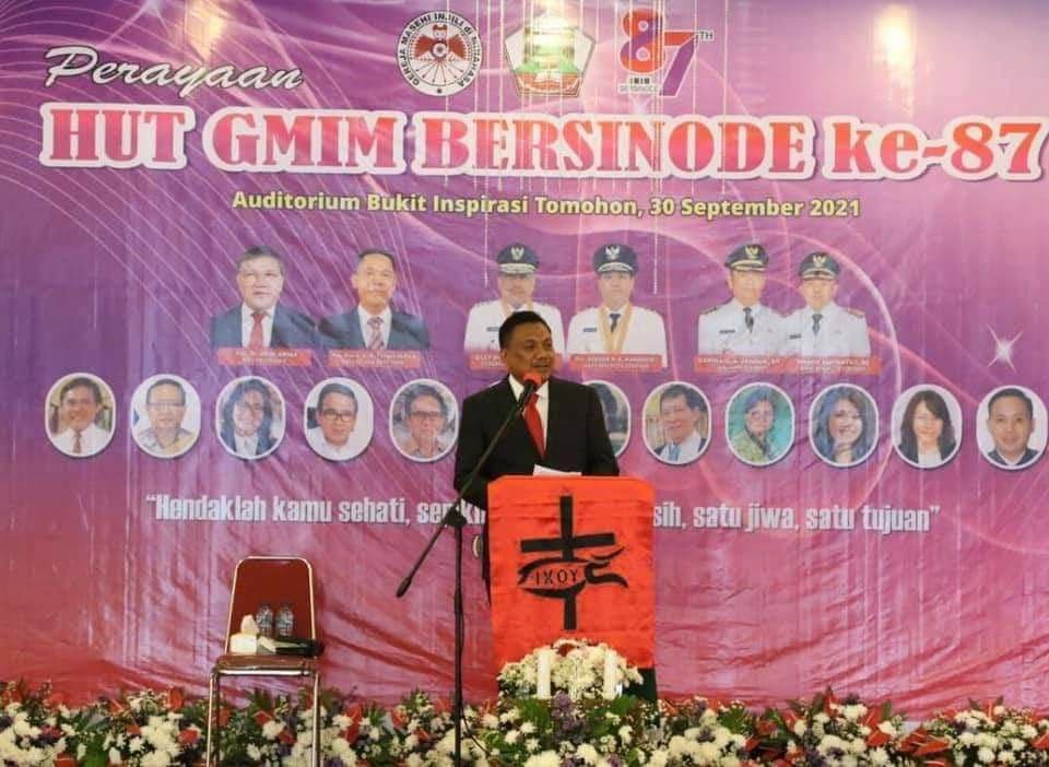 A-TIMES.ID, MANADO – HUT GMIM Bersinode ke 87 setelah ibadah dipimpin Ketua Sinode Pdt Hein Arina yang dilanjutkan dengan pelantikan panitia Sidang Sinode GMIM dihadiri langsung Gubernur Sulut Olly Dondokambey, Kamis (30/9/2021).