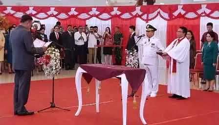 A–TIMES,MANADO–Gubernur Sulut Olly Dondokambey melantik Asisten Administrasi Umum Setdaprov Sulawesi Utara (Sulut) Fransiscus Manumpil. Pengambilan sumpah dan janji berlangsung di Aula Mapalus Kantor Gubernur Sulut, Senin (28/10/2024).Sebelumnya, Manumpil ditugaskan sebagai Pejabat Sementara (Pjs), menggantikan kepala daerah sebelumnya yang telah menyelesaikan tugas, yakni Bupati Elly Lasut dan Wakil Bupati Moktar Parapaga.Atas nama Presiden Republik Indonesia, saya melantik Dr Fransiscus Engelbert Manumpil MEnv. Mgmt sebagai Penjabat Bupati Kepulauan Talaud berdasarkan Keputusan Menteri Dalam Negeri Nomor 100.2.1.3/8063/OTDA,” ucap Gubernur Olly Dondokambey.Gubernur menyatakan pelantikan ini telah sesuai dengan aturan undang undang, dimana masa jabatan Bupati dan Wakil Bupati Talaud telah berakhir. Ia yakin, Fransiscus Manumpil mampu menjalanakan tugas dan tanggung jawab sebagai Pj Bupati Talaud.