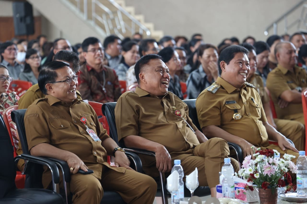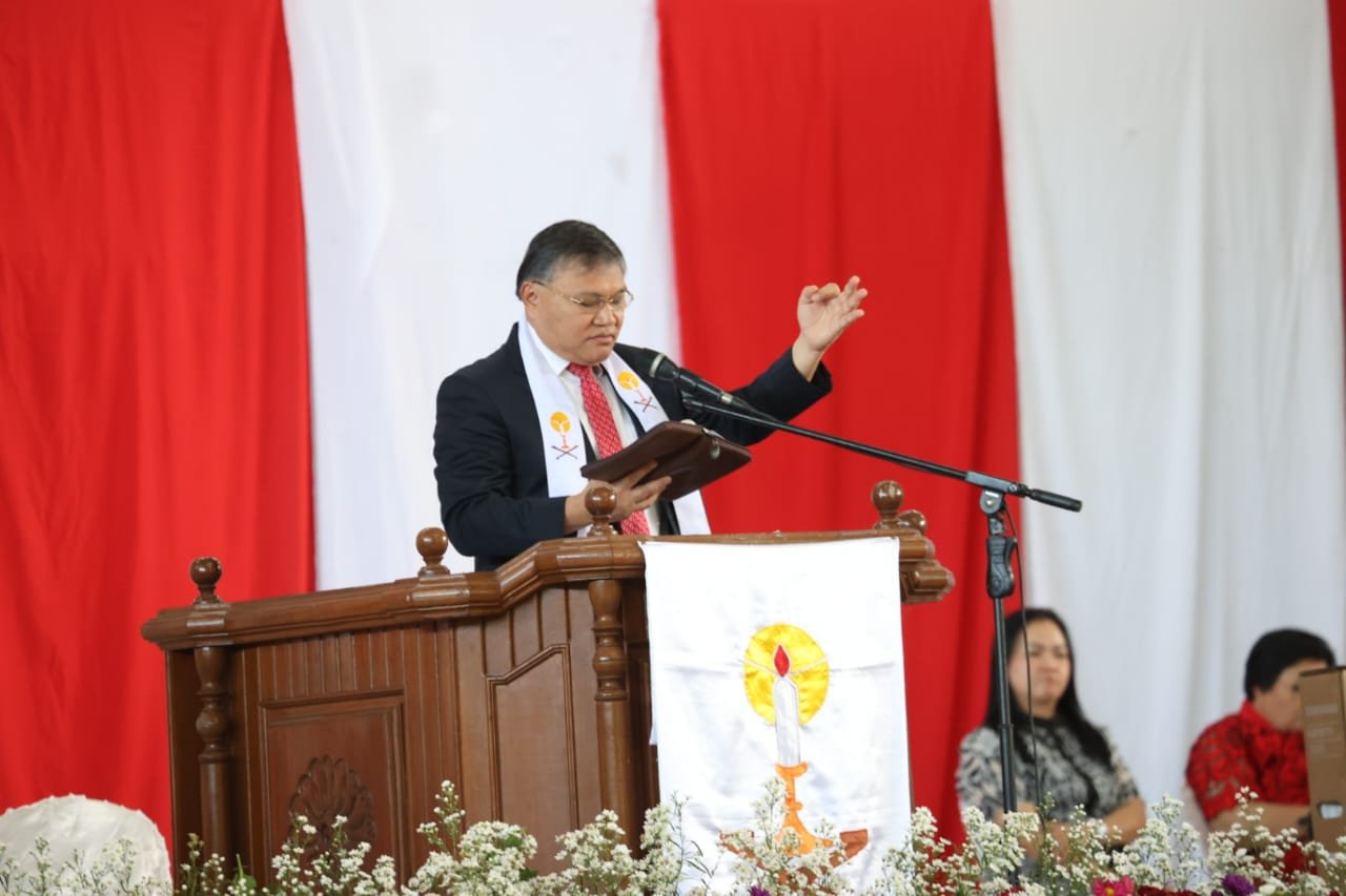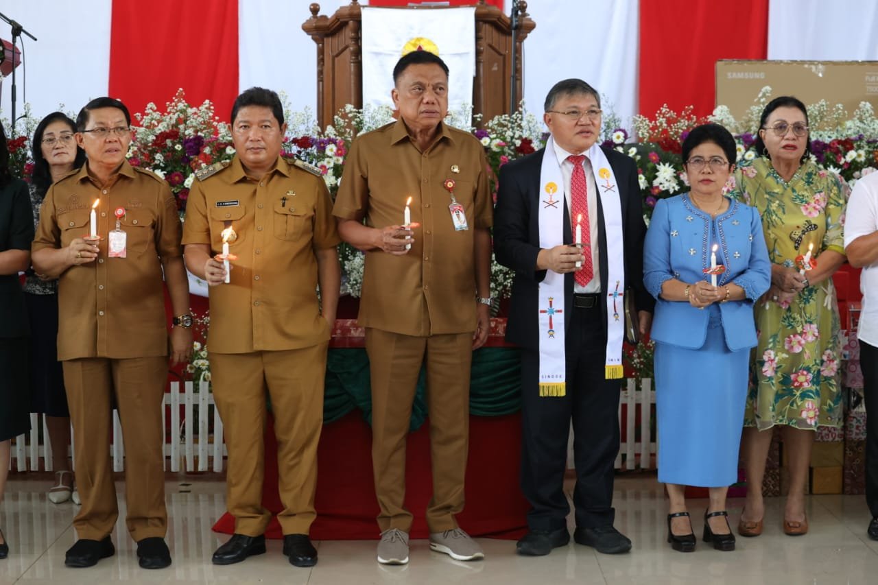 Saat menghadiri Ibadah Syukur Natal dan Tahun Baru Kerukunan Keluarga Pendeta dan Guru Agama (KKPGA) GMIM Rayon Minahasa, di Gedung Wale Ne Tou Minahasa Tondano, Selasa (9/1/2024).