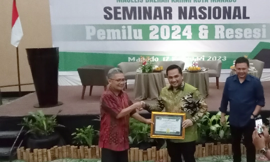 A-TIMES, MANADO—Majelis Wilayah Korps Alumni Himpunan Mahasiswa Islam (MW KAHMI) Sulawesi Utara bekerja sama dengan Majelis Daerah KAHMI Kota Manado, Jumat (17/02/2023) menggelar Seminar Nasional dengan tema ‘Pemilu 2024 dan Resesi’, di Sintesa Peninsula Hotel Manado menghadirkan Anggota DPR RI Komisi II, H.M. Rifqinizami Karsayuda, Staf KPU RI, Andika Pranata Jaya dan Ketua Bawaslu Sulawesi Utara, Ardiles Mewoh.