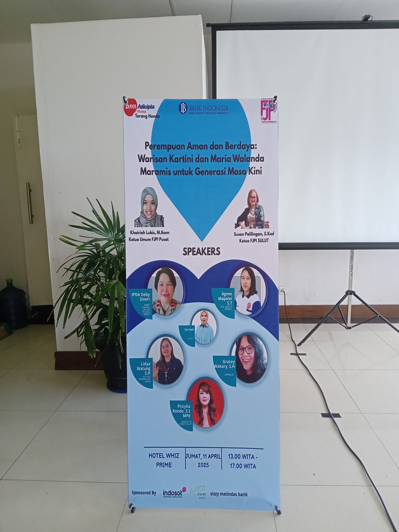A–TIMES,MANAADO–Memperingati Hari Kartini yang jatuh pada  21 April 2025 dan Maria Walanda Maramis Forum Junalis Perempuan Sulut (FJPI) Jumat(11/4/2025( menggelar diskusi dengan Tema” Perempuan Aman dan Berdaya Warisan Kartini dan Maria Walanda Maramis untuk Generasi masa Kini”. Dikusi  tersebut membahas banyak hal mula dari pentingnya Aman dan Selamat dijalan bersama Kanit Kamsel Polres Minut yang paparkan Ipda Deby Sineri dan Agnes Mapalei dari Honda.