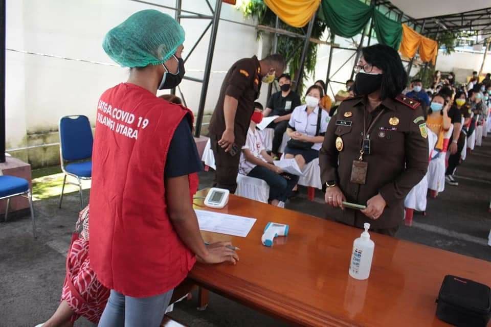 Kegiatan vaksinasi ini kerja sama antara Panitia HBA Ke-61 Kejati Sulut bekerjasama dengan Dinas Kesehatan Sulut.