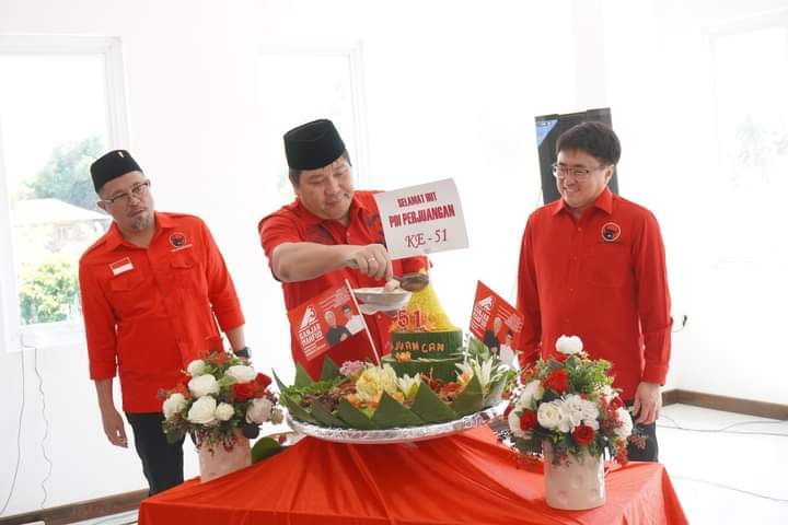 A–TIMES,MANADO–HUT PDI Perjuangan yang ke 51 Rabu(10/1/2024) berlangsung penuh suka cita dan meriah. HUT Kali ini jajaran pengurus PDI Perjuangan Sulut dipimpin Wakil Gubernur Sulut. Drs. Steven O.E. Kandouw hadir dan merayakan HUT partai di kantor Baru DPC PDI Perjuangan Kota Manado di Jln. Ringroad GPI Kecamatan Mapanget Manado.Kandouw juga sebagai Wakil Ketua Bidang Politik DPD PDI Perjuangan Sulut.
