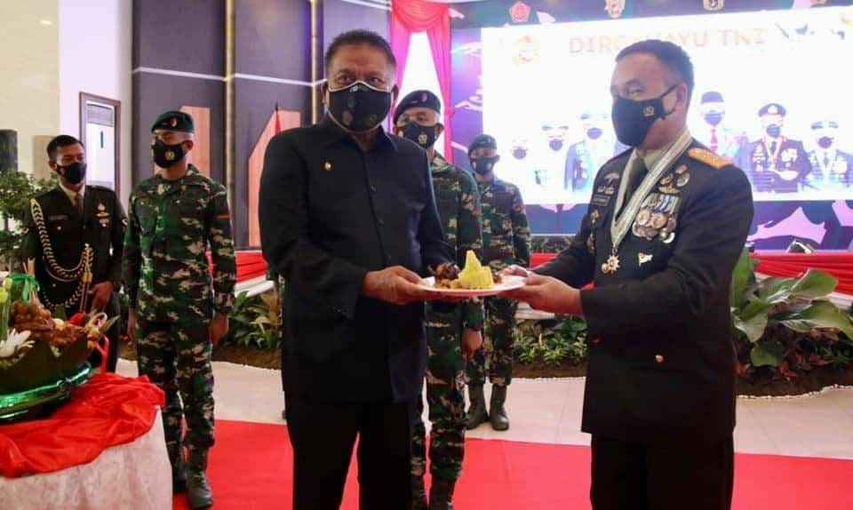 Foto: HUT: Gubernur Olly Dondokambey bersama Forkopimda menghadiri Peringatan HUT TNI ke 76 yang mengambil tema; “Bersatu, Berjuang, Kita Pasti Menang” di Kodam XIII Merdeka Manado. (foto:SSC)