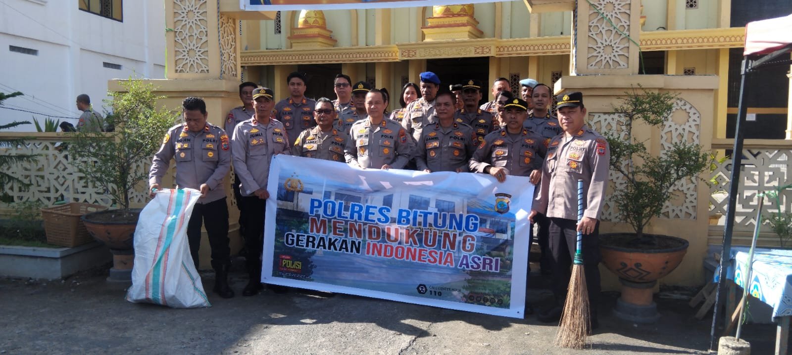A–TIMES,BITUNG—Dengan semangat mendukung Gerakan Indonesia Asri yang dicetuskan Presiden Republik Indonesia, Polres Bitung memanfaatkan momentum Bulan Suci Ramadhan dengan melaksanakan aksi bersih-bersih rumah ibadah.