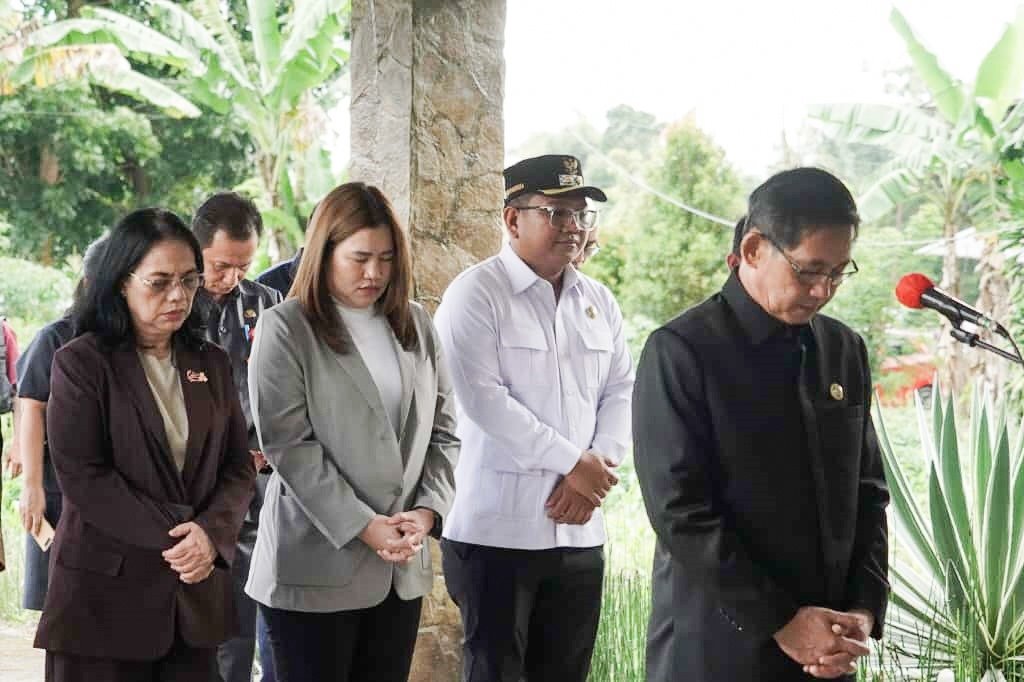 A-TIMES,BITUNG–Pemerintah kota Bitung tak pernah melupakan jasa para mantan pemimpin kota ini yang sangat berjasa membangun kota Cakalang. Dalam rangka memperingati Hari Ulang Tahun ke-35 Kota Bitung, Wali Kota Bitung 𝐇𝐞𝐧𝐠𝐤𝐲 𝐇𝐨𝐧𝐚𝐧𝐝𝐚𝐫, SE, dan Wakil Wali Kota Bitung 𝐑𝐚𝐧𝐝𝐢𝐭𝐨 𝐌𝐚𝐫𝐢𝐧𝐠𝐤𝐚, di dampingi Ketua TP PKK Kota Bitung Ny. 𝐄𝐥𝐥𝐞𝐧 𝐇𝐨𝐧𝐚𝐧𝐝𝐚𝐫 𝐒𝐨𝐧𝐝𝐚𝐤𝐡, SE, dan Sekretaris TP PKK Kota Bitung Ny. 𝐉𝐚𝐜𝐢𝐧𝐭𝐚 𝐌𝐚𝐫𝐲𝐛𝐞𝐥𝐥 𝐌𝐚𝐫𝐢𝐧𝐠𝐤𝐚 𝐆𝐮𝐦𝐨𝐥𝐮𝐧𝐠 dan Sekretaris Daerah 𝐈𝐫. 𝐈𝐠𝐧𝐚𝐭𝐢𝐮𝐬 𝐑𝐮𝐝𝐲 𝐓𝐡𝐞𝐧𝐨, ST, MT, MAP dan Ketua Dharma Wanita Persatuan Kota Bitung Ny Nurjahya Theno Munarwin serta jajaran Pemerintah Kota Bitung melaksanakan ziarah ke makam para mantan Wali Kota dan Wakil Wali Kota Bitung Jumat(3)10/2025). Ziarah tersebut sebagai bentuk penghormatan dan penghargaan atas jasa serta pengabdian para pemimpin terdahulu yang telah berkontribusi dalam pembangunan Kota Bitung.