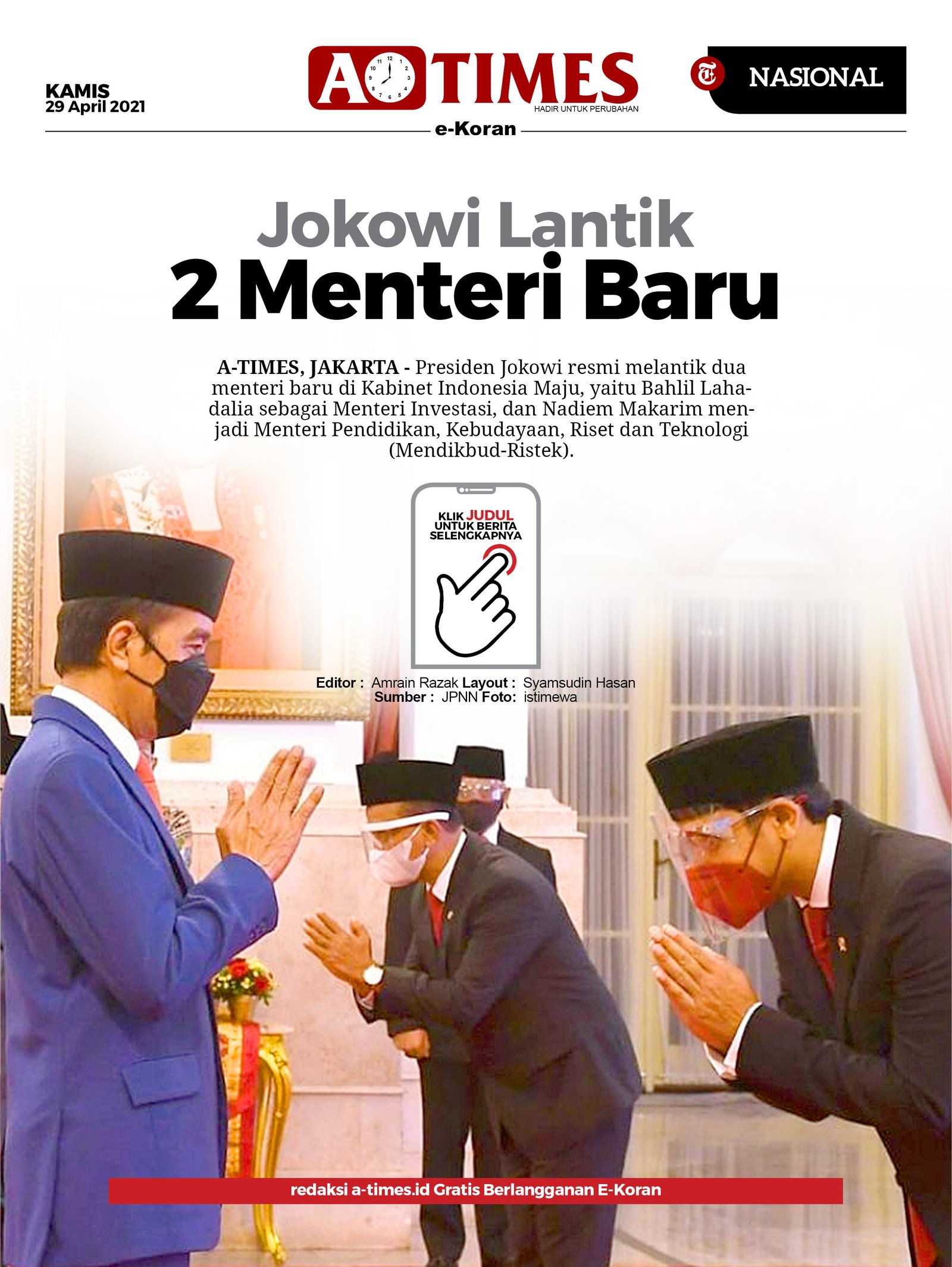 A-TIMES.ID, JAKARTA – Presiden Jokowi resmi melantik dua menteri baru di Kabinet Indonesia Maju, yaitu Bahlil Lahadalia sebagai Menteri Investasi, dan Nadiem Makarim menjadi Menteri Pendidikan, Kebudayaan, Riset dan Teknologi (Mendikbud-Ristek).