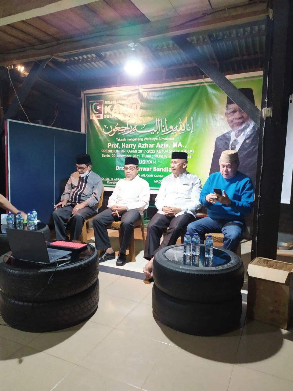 Takziah tersebut diisi dengan tausiah yang dibawakan kanda Hi Anwar Sandiah serta selayang pandang mengenang almarhum Harry Azhar Azis oleh Koordinator Presedium KAHMI Sulut, Dr Drs Asripan Nani, dilanjutkan Presedium MW KAHMI Sulut, Abdurrahman Konoras, Suardi Hamzah, Dewan Penasihat MW KAHMI, Hamdi Paputungan, kanda Uten Moki, pengurus MD KAHMI se-Sulut dan pengurus dan anggota HMI Manado.