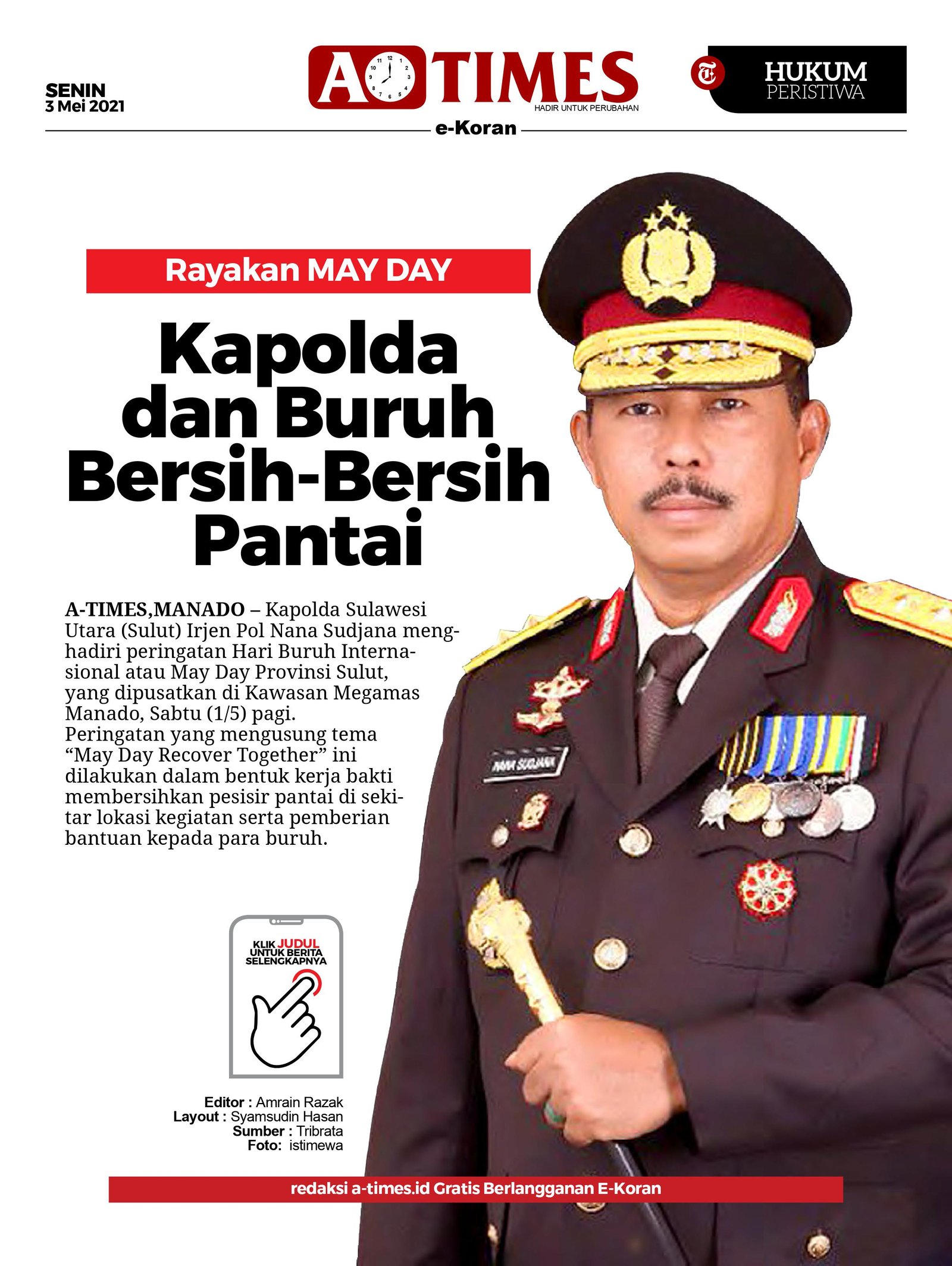 A-TIMES.ID, MANADO – Kapolda Sulawesi Utara (Sulut) Irjen Pol Nana Sudjana menghadiri peringatan Hari Buruh Internasional atau May Day Provinsi Sulut, yang dipusatkan di Kawasan Megamas Manado, Sabtu (1/5) pagi.
