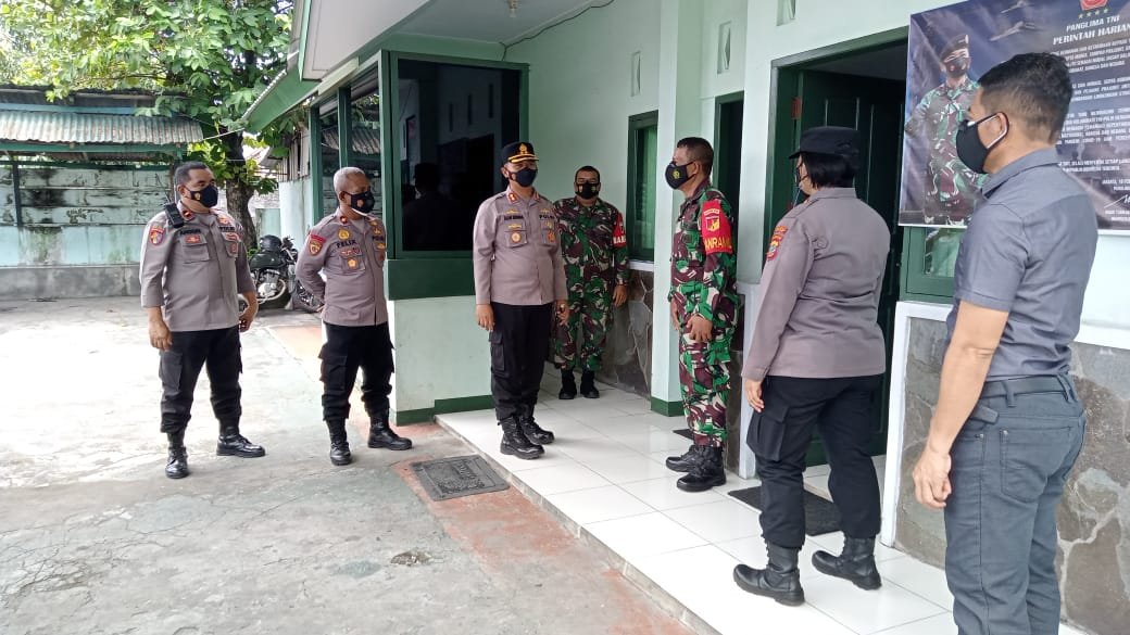 Kapolres Bitung tiba di Mako Koramil 1310-01 Bitung didampingi sejumlah pejabat Polres lainnya disambut oleh Danramil Kapten Inf. Fredryk Liwutang bersama anggota.