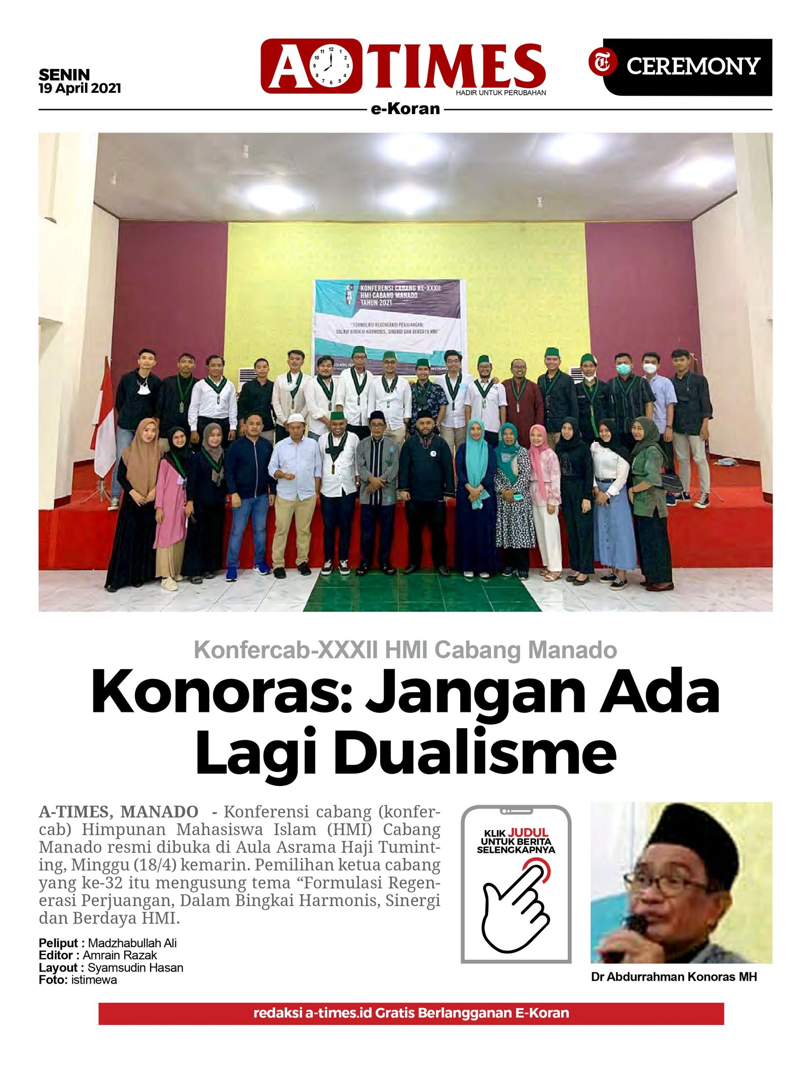 A-TIMES.ID, MANADO — Konferensi cabang (konfercab) Himpunan Mahasiswa Islam (HMI) Cabang Manado resmi dibuka di Aula Asrama Haji Tuminting, Minggu (18/4) kemarin.