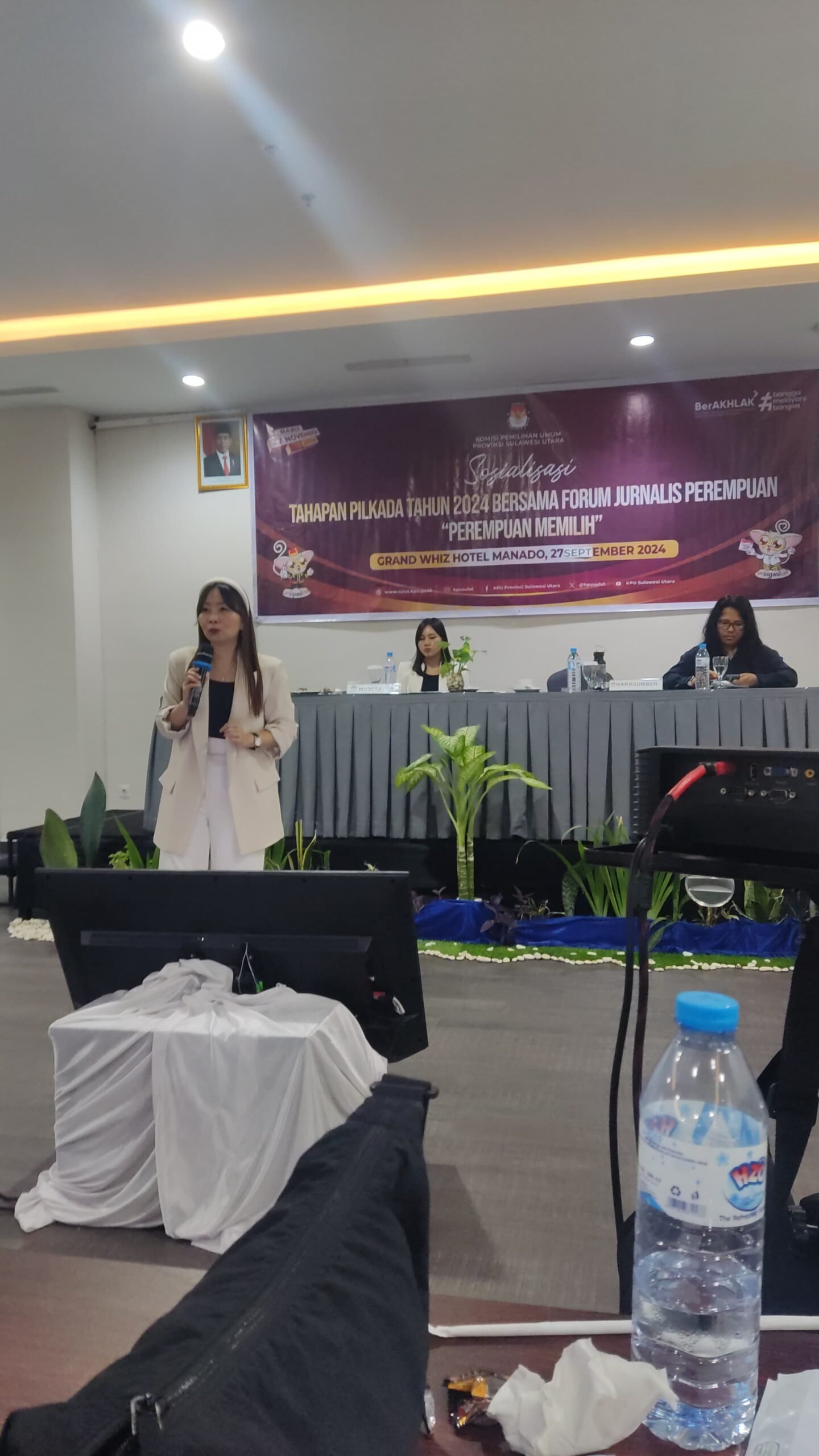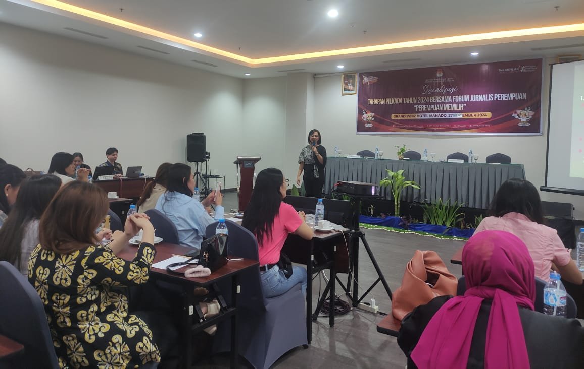 A–TIMES,MANADO– Komisi Pemilihan  Umum(KPU) Sulut terus memaksimalkan sosialisasi tahapan Pilkada kepada warga Sulut. Jumat(27/[/2024) dengan mengandung Forum Jurnalis Perempuan Indonesia(FJPI) Sulut digelar sosialisasi Tahapan Pilkada 2024 di Hotel Grand Wize kawasan Mega Mas Manado.