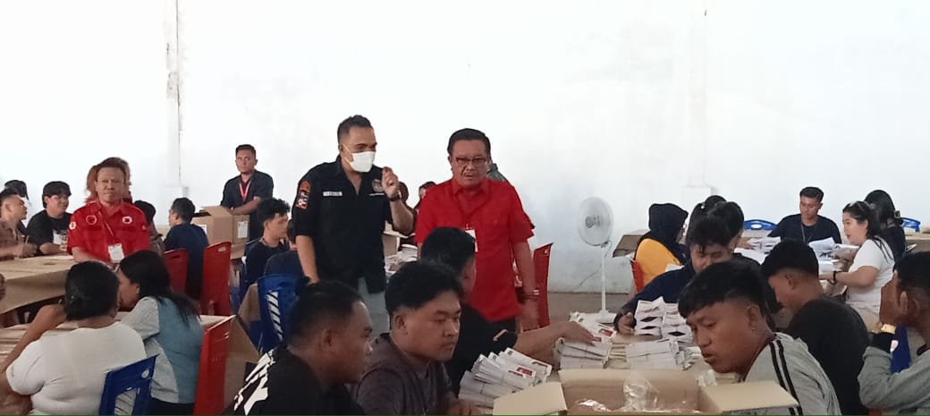 A–TIMES,BITUNG—Komisi Pemilihan Umum(KPU) kota Bitung memastikan proses pellipatak surat suara berjalan sesuai aturan dan dijaga ketat aparat terkait. Hal ini dikatakan ketua KPU Bitung Deslie Sumampouw Jumat(4/1/2024) usai mendampingi Wali Kota Bitung Ir Maurits Mamtiri saat meninjau langsung proses pelipatan surat suara digudang logistik KPU Bitung di Madidir Ure.” Kami undang Forkopimda dan teman teman media silahkan lihat langsung proses pelepasan surat suara semua aman,” kata Sumampouw saat mendampingi Wali Kota Bitung Ir Maurits Mantiri yang mengecek proses pelepasan surat suara bersama forkopimda lainnya.