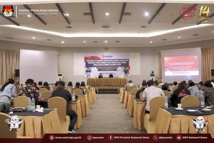 A–TIMES,MINUT–Badan Pengawas Pemilu(Bawaslu)  Sulut menggelar sosialisasi penyelesaian sengketa proses dan pemetaan potensi sengketa pada masa Tenang Pemilu 2024. Ini digelar di Hotel Sutan Raja Minut Rabu(7/2/2024).