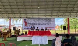 Pelantikan digelar di Lapangan Futsal Kawasan Perkantoran Panango, Kec. Bolaang Uki, Selasa (07/10/2025) .