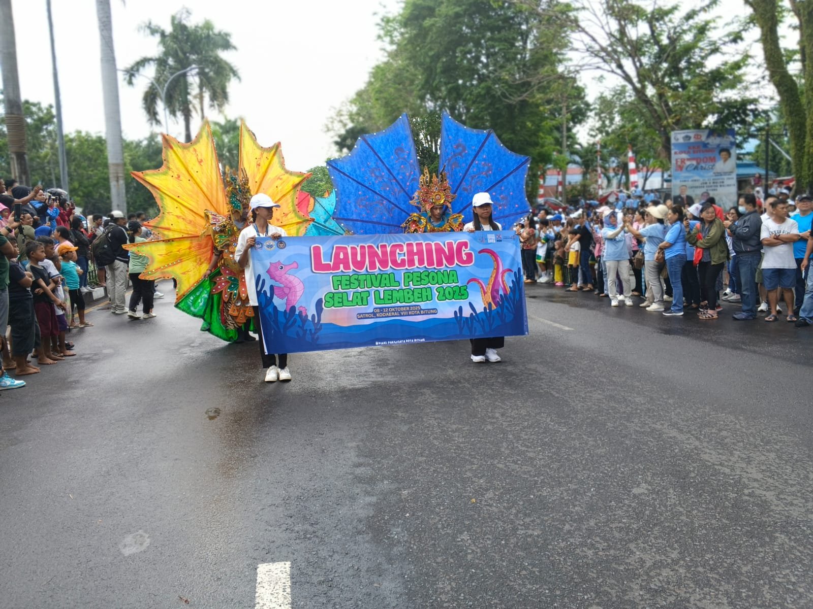 A–TIMES,BITUNG– Launching Festival Pesona Selat Lembeh (FPSL) 2025 digelar Jumat(29/8/2025) sore. Start depan kantor Walikota Bitung dan finish di dermaga Satrol AAL Samuel Languyu. Tema FPSL 2025 kali ini adalah” Harmony in Diversity – Harmonisasi dalam Keberagaman” . Diawali dengan kirab budaya yang diikuti jajaran SKPD,SD,hingga SMU ikut pada kirab tersebut dengan beraneka pakaian yang menggambarkan kekayaan budaya Nusantara. Hebohnya lagi penampilan Marching Band Gita Jala Taruna AAL, Politeknik Kelautan dan Perikanan Bitung, dan SMK Pelita Bahari mengudang antusias warga menyaksikan langsung atraksi tersebut. Peserta kirab budaya disambut Walikota Bitung Hengky Honandar dan wakil walikota Randito Maringka, bersama ketua PKK Ellen Sondakh sekretaris PKK Jasinta Maribel Gumolung serta sekot Ign Rudy Theno ST MT dan Forkopimda di panggung utama depan kantor Walikota Bitung .Acara puncak FPSL akan digelar pada 8-12 Oktober 2025 usai HUT kota Bitung pada 10 Oktober nanti.