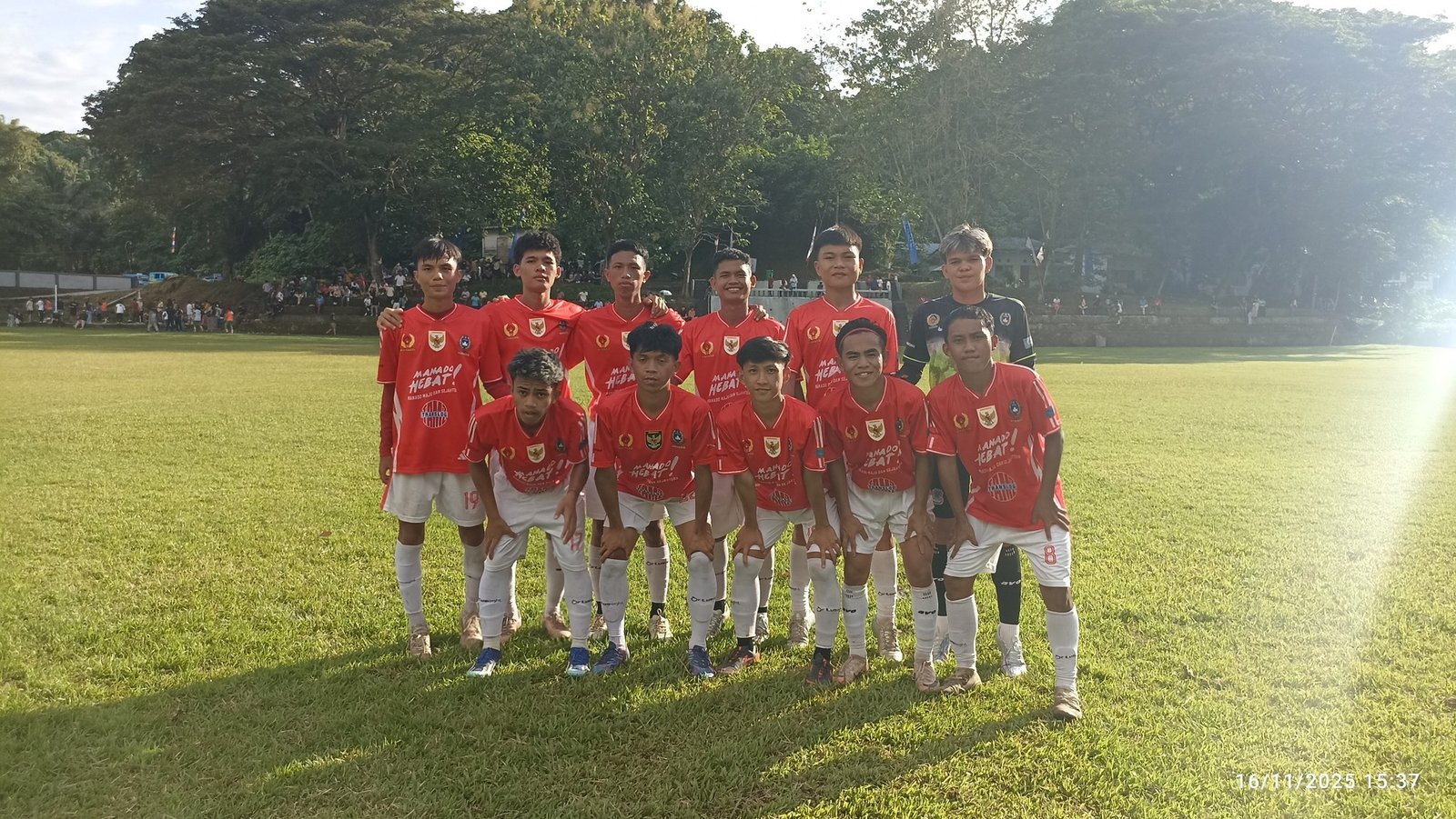Para penonton tuan rumah termasuk Ketua Askot PSSI Manado Abid Takalamingan bersorak.