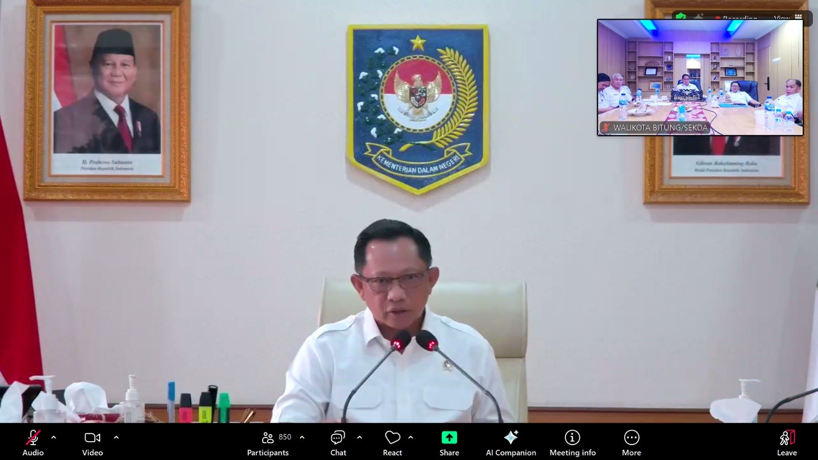A—-TIMES,BITUNG— Mentri Dalam Negeri (,Mendagri,) Tito Karnavian Rabu(24/12/2025) menggelar rapat evaluasi Realisasi APBD 2025, seluruh Indonesia. Mendagri menggelar rapat secara Zoom diikuti kepala daerah gubernur,Bupati,Wali kota se Indonesia. Kepala daerah didampingi sekretaris daerah, kepala Inspektur,Badan Keuangan dan lainnya. Walikota Bitung Hengky Honandar hadir Rakor tersebut secara online.