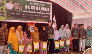 Usai pembukaan Musda Kahmi Bolsel memberikan bantuan sosial beras 5 kg sebagai bentuk dukungan dan kepedulian terhadap masyarakat miskin sekitar lokasi kegiatan. Bantuan diberikan secara simbolis oleh Bupati Iskandar diikuti pengurus Kahmi Sulut dan Kahmi Bolsel.