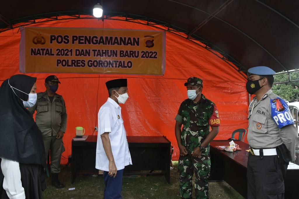 A-TIMES,LIMBOTO – Bupati Gorontalo, Nelson Pomalingo bersama Wakil Bupati Gorontalo Hendra Hemeto dan Pimpinan ODP terkait melakukan peninjauan di sejumlah lokasi Posko Keamanan Natal dan Tahun baru ( Nataru), 2022 Senin (27/12/2021).
