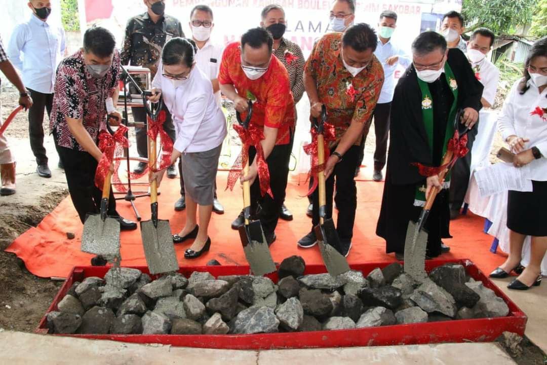 A-TIMES,MANADO – Gubernur Olly Dondokambey, Kamis (18/11/2022) melakukan peletakan batu pertama Pembangunan Gedung Gereja GMIM Kanisah Boulevard Getsemani Sakobar.