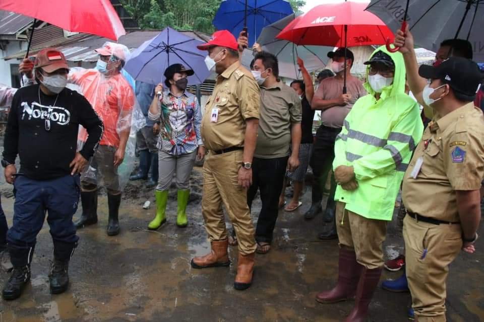 Gubernur Olly Dondokambey usai melepas kontingen PON Sulut ke Papua, langsung turun ke Mitra melihat kondisi warga disana.