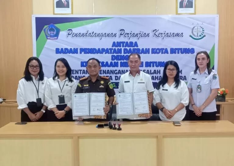 A–TIMES,BITUNG– Untuk memaksimalkan potensi pendapatan daerah, terutama dari sektor pajak dan retribusi daerah, guna meningkatkan kesejahteraan masyarakat Kota Bitung. Badan Pendapatan Daerah (Bapenda) Kota Bitung menggandeng Kejaksaan Negeri (Kejari) Bitung. Terkait ini dilakukan Penandatangan kerjasama terkait penanganan masalah hukum di bidang perdata dan tata usaha negara. MoU itu ditandatangani langsung oleh Kepala Bapenda Kota Bitung, Theo Rorong SE, dan Kepala Kejaksaan Negeri (Kajari) Bitung Dr Yadyn SH MH, bertempat di Aula Kantor Kejari Bitung, Rabu (26/3/2025). Kajari saat sambutan mengatakan, banyak potensi pendapatan daerah yang bisa dimaksimalkan oleh Bapenda Kota Bitung. Dia menambahkan tanpa ada kerjasama dengan Kejaksaan tentu akan banyak kendala yang perlu disikapi secara bersama.” Selama tiga bulan ke depan, kami akan mengevaluasi capaian Bapenda untuk memastikan bahwa penerimaan pajak daerah dapat dimaksimalkan. Hal ini sangat penting dalam rangka meningkatkan kesejahteraan masyarakat Kota Bitung,” pungkas Kajari. Ia juga mencontohkan keberhasilan kerja sama serupa dengan Bank Rakyat Indonesia (BRI) Cabang Bitung dan Perumda Air Minum Duasudara.” Kami berhasil membantu penagihan tunggakan sekitar Rp 600 juta dari BRI serta mengembalikan aset milik Perumda Air Minum Duasudara yang sebelumnya berpindah ke pihak lain,” pungkas Kajari . Kepala Bapenda Kota Bitung, Theo Rorong menyambut baik kerja sama ini dan menegaskan bahwa dukungan hukum dari Kejari sangat penting dalam menyelesaikan berbagai tantangan terkait penagihan pajak, sengketa aset, dan kebijakan administrasi.” Dengan adanya kerja sama ini, kami berharap bisa meningkatkan kepatuhan wajib pajak, mempercepat penyelesaian sengketa hukum, dan memastikan kebijakan yang diambil sesuai dengan peraturan yang berlaku,” tukasnya. Rorong juga menambahkan sinergi ini akan meningkatkan transparansi, akuntabilitas, serta efektivitas dalam pengelolaan pendapatan daerah.(*)