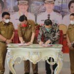 A-TIMES,MANADO — Gubernur Sulut Olly Dondokambey membawa sampel tanah dari Watu Pinawetengan Minahasa dan Air dari Kaki Gunung Klabat dalam prosesi penyatuan tanah dan air di Titik