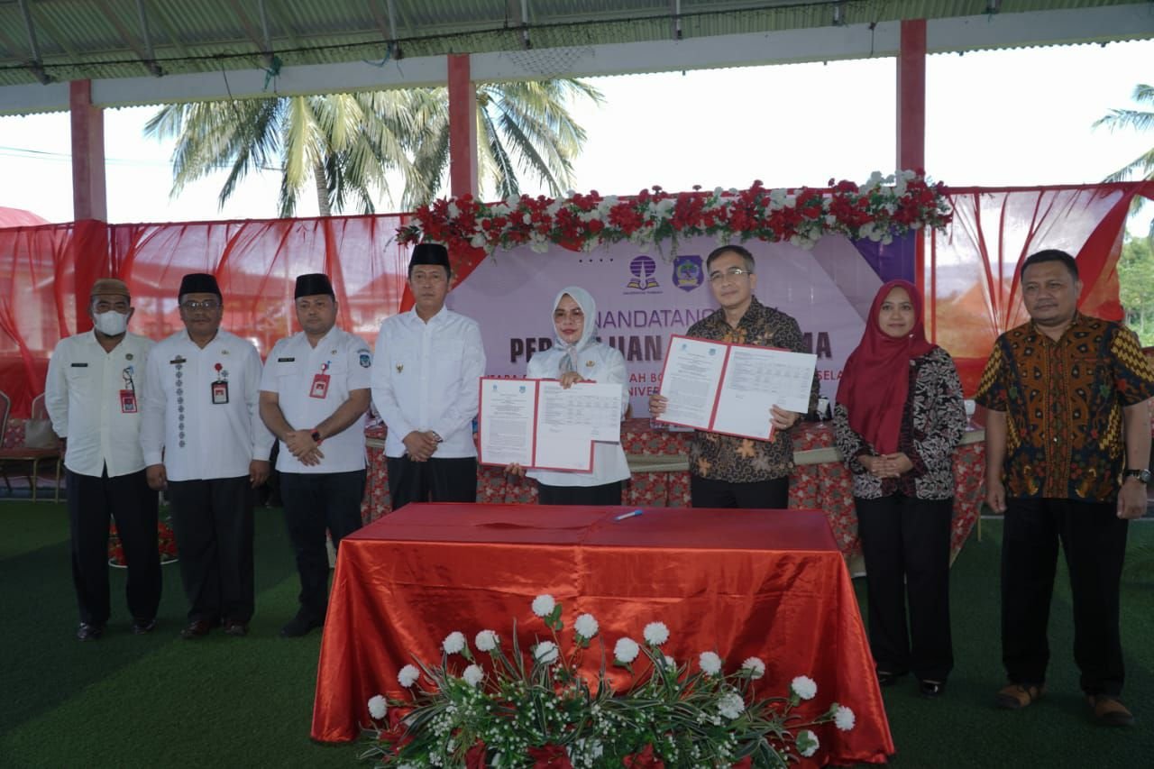 Penandatanganan kesepakatan disaksikan Bupati Bolsel H. Iskandar Kamaru SPt. Isi kerja sama terkait pemberian bantuan pendidikan kepada 100 Guru PAUD Kabupaten Bolsel. Perwakilan UT Direktur UPBJJ UT Gorontalo Andi Suci Anita Sp, Mp. Dari Pemkab diwakili Sekda M. Arvan Ohy SSTP, MAP.