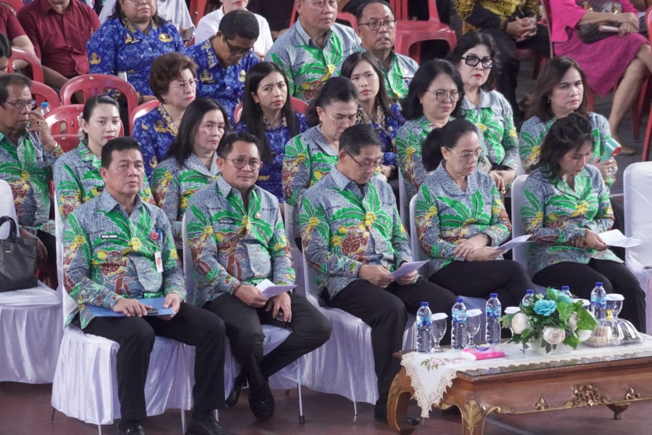 Khadim Pdt. Dr. Roy Tamaweol, T.HD, Ketua TP-PKK Ny. Ellen Honandar Sondakh, Sekretaris Daerah Kota Bitung Ir. Ignatius Rudi Theno, ST., MT, bersama Ketua Dharma Wanita Ny. Nurjaya Theno Munarwin, SE, serta jajaran Forkopimda, tokoh agama, dan tokoh masyarakat lainnya.
