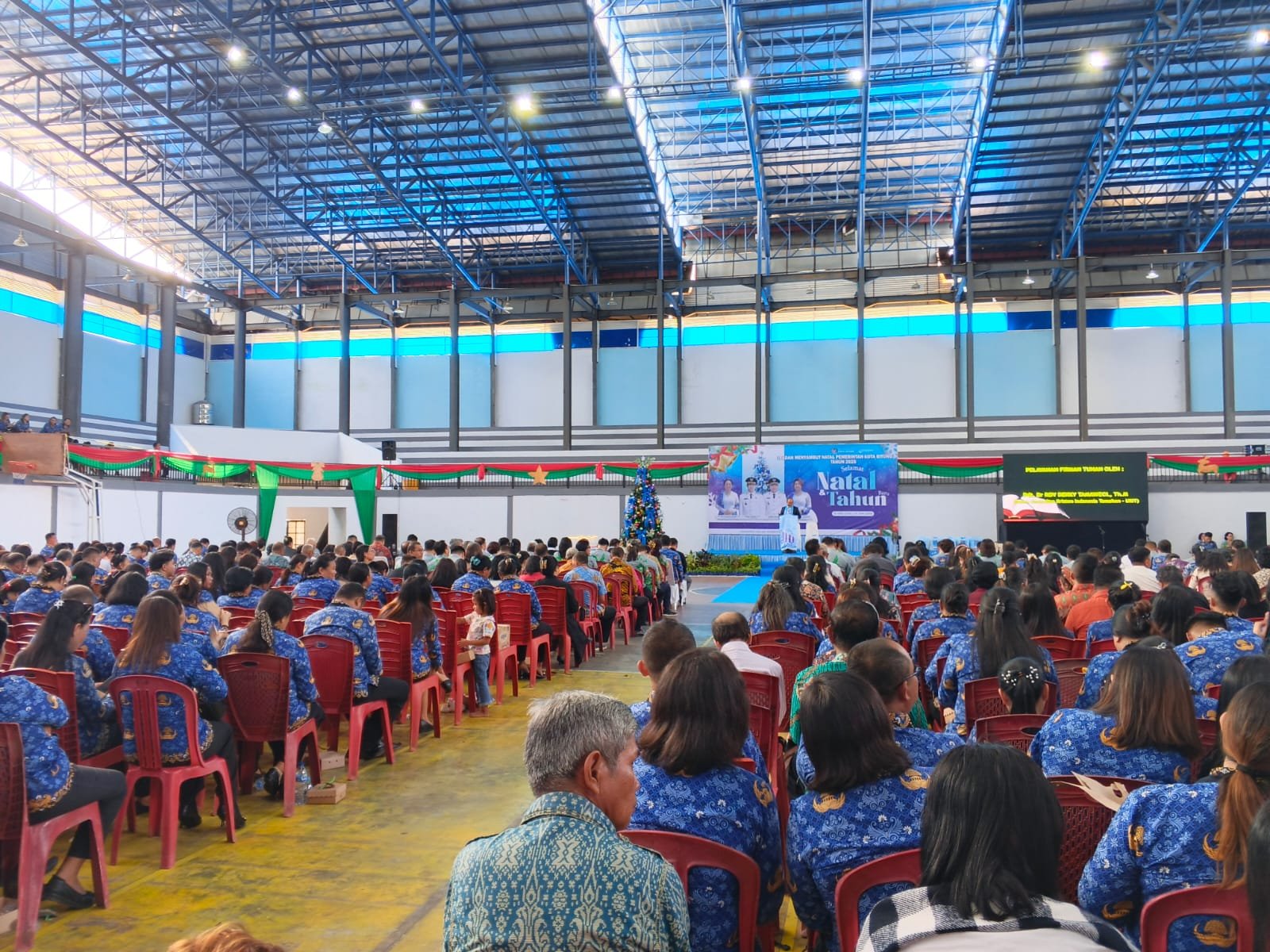 A–TIMES,BITUNG– Ribuan ASN dan P3K memadati tribun GOR Manembo-Nembo Senin(1/12/2025) dalam rangka perayaan Natal 2025. Perayaan Natal kalo ini berlangsung khidmat dan penuh suka cita.