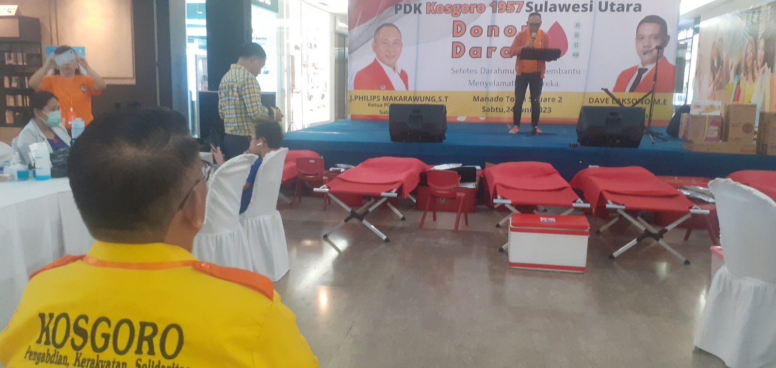 A-TIMES, MANADO—Hari Donor Darah Sedunia yang jatuh pada tanggal 14 Juni juga diperingati Pengurus Daerah Kolektif (PDK) Kesatuan Organisasi Serbaguna Gotong Royong (Kosgoro) 1957 Provinsi Sulawesi Utara (Sulut). Sabtu (24/06/2023) akhir pekan kemarin digelar aksi sosial Donor Darah di Mantos Dua.