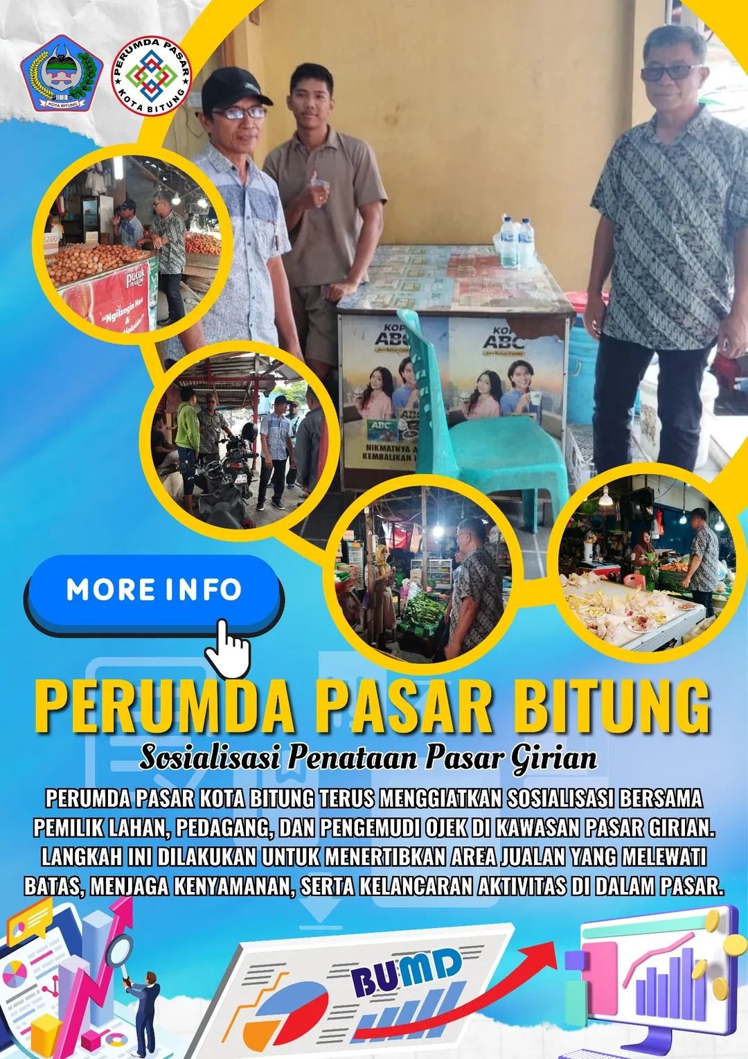 A–TIMES,BITUNG-Inovasi terus dilakukan Perumda Pasar dalam rangka menciptakan pasar yang bersih,aman,tertib dan nyaman bagi pedagang maupun pengunjung. Akhir pekan kemarin Perumda Pasar Kota Bitung terus menggiatkan sosialisasi bersama pemilik lahan, pedagang, dan pengemudi ojek di kawasan Pasar Girian.