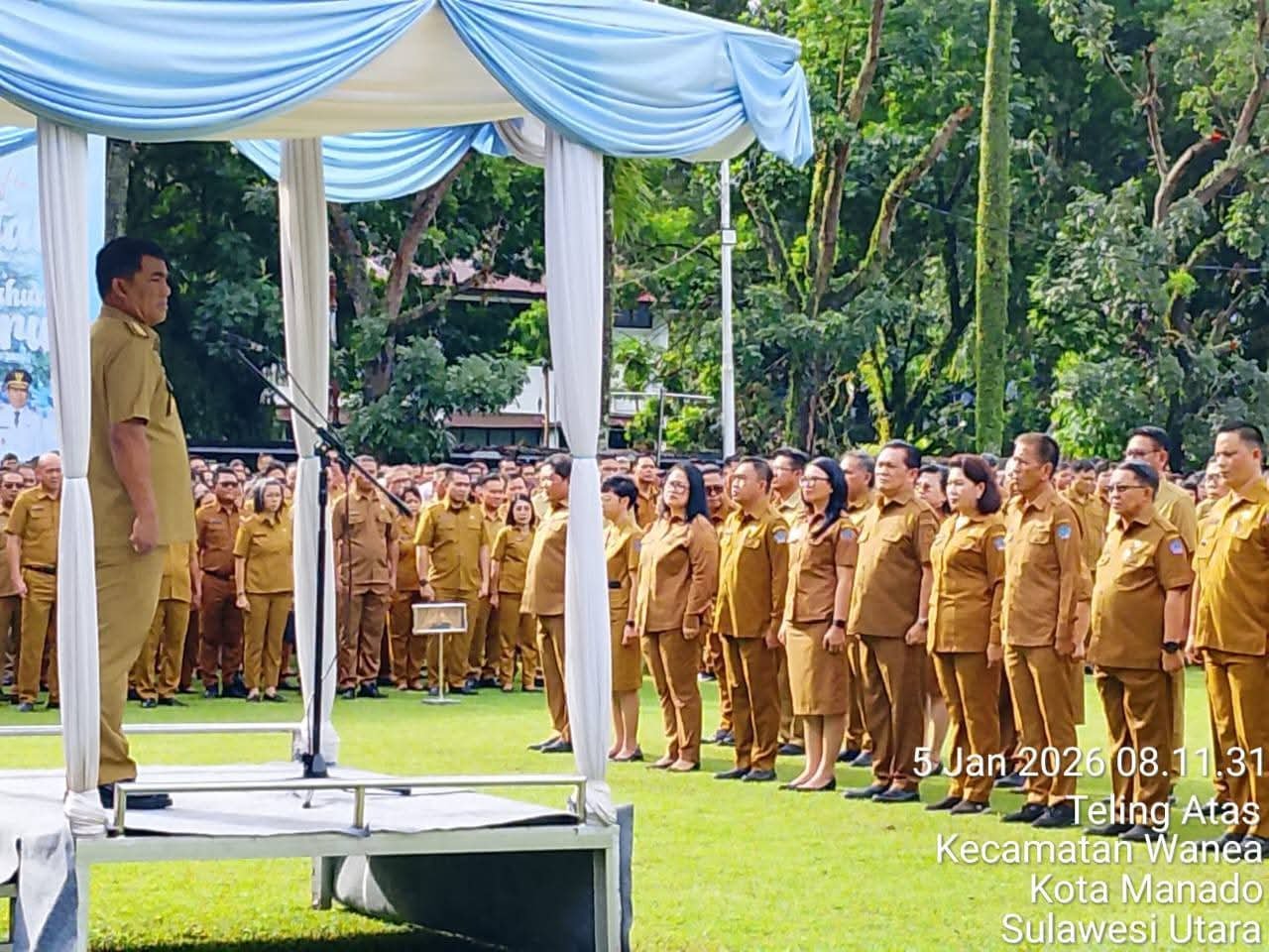 A—TIMES,MANADO— Aparatur Sipil Negara(ASN) harus mengedepankan disiplin sebagai fondasi utama dalam bekerja melayani masyarakat. Hal ini ditegaskan gubernur Sulut Yulius Selvanus Senin(5/1/2026) saat memimpin Apel perdana pasca libur Natal dan Tahun Baru 2026 di halaman Kantor Gubernur.