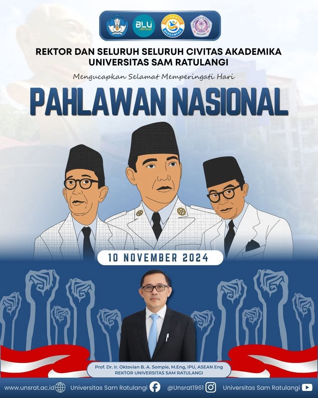 Manado, A-Times.id- Universitas Sam Ratulangi (UNSRAT) menggelar Upacara Peringatan Hari Pahlawan Nasional di halaman Rektorat, Senin (10/11/2025) pagi.